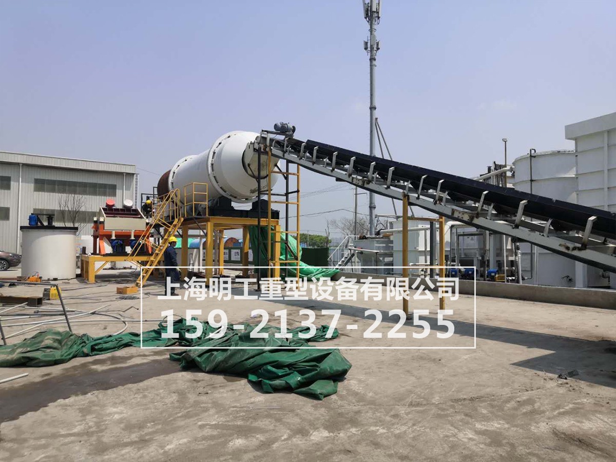 圓筒式洗石機(jī)由四個(gè)拖輪支撐,筒體隨著電機(jī)、減速機(jī)帶動(dòng)大小齒輪作低速旋轉(zhuǎn)。含有泥團(tuán)和石粉的礦石自進(jìn)料口經(jīng)給料裝置給入,進(jìn)入旋轉(zhuǎn)滾筒內(nèi)的礦石被清洗滾筒內(nèi)安裝具有特定角度的攪拌裝置不斷的帶起、拋起、攪拌,自進(jìn)料端到出料端移動(dòng)過程中多次循環(huán)過程中被順向或逆向的高壓水柱不斷的洗滌,清洗干凈的礦石經(jīng)過卸料端脫污水裝置的脫水后排出送往成品堆。含有污泥的污水則通過出料端的污水裝置流出,經(jīng)過三級(jí)沉淀池的沉淀后以備再次洗礦循環(huán)使用。